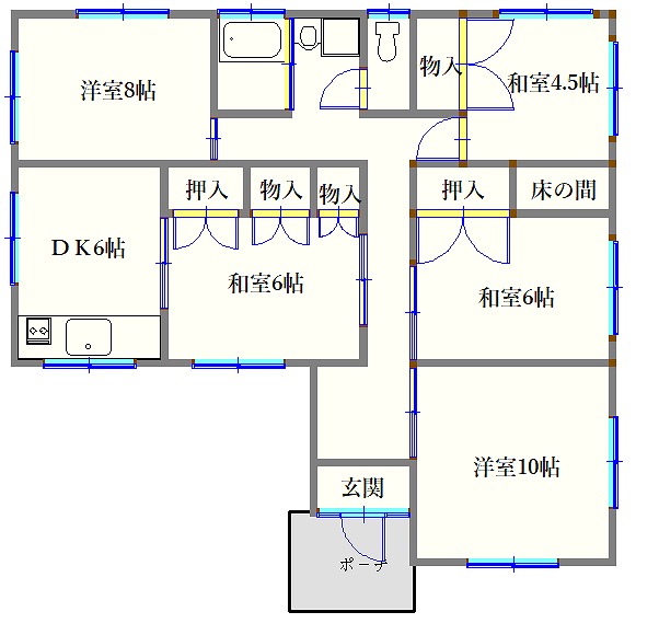 | 間取り詳細 | DK、和室6帖、和室6帖、和室4.5帖、洋室8帖、洋室8帖 |