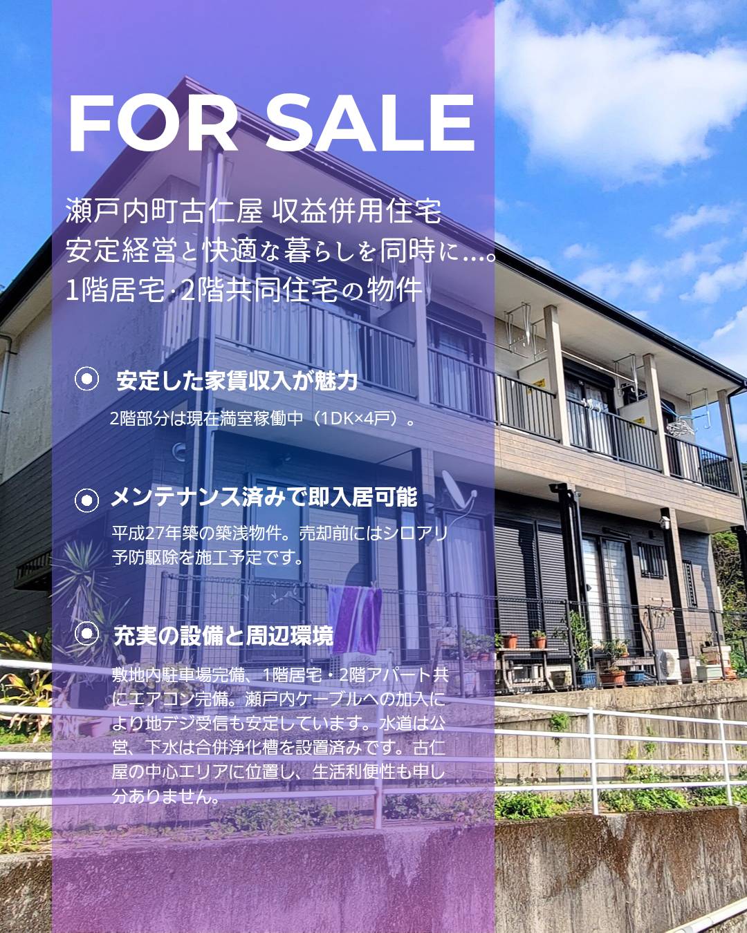 - 4,300万円!住みながら稼ぐ「収益併用住宅」🏠2階のアパート4戸が現在【満室稼働中】 瀬戸内町古仁屋